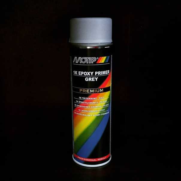Еще один интересный материал — однокомпонентный грунт-выравниватель, выпускающийся в аэрозольных баллончиках. Особую любовь автомаляров он заслужил за применение в тех случаях, когда на уже готовой под покраску детали в нескольких точках прошлифован грунт. В таком случае аэрозольный грунт позволяет сэкономить кучу времени, которое пришлось бы потратить на разбавление грунта, его заправку в пистолет и мойку после работы. После чего нанесенный грунт нужно еще и высушить.