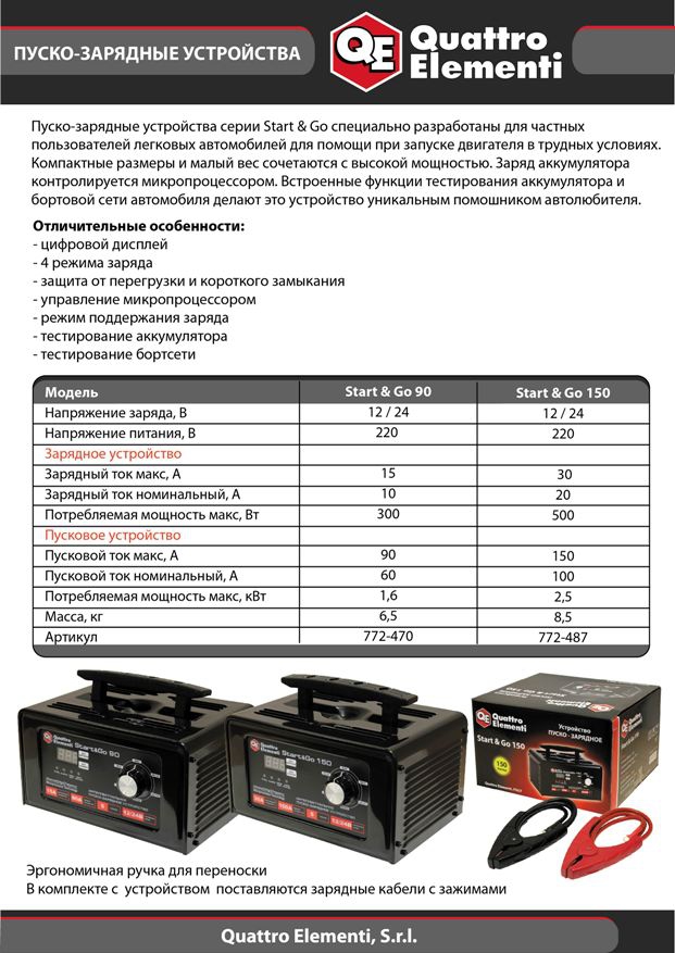Базовая комплектация прибора подразумевает наличие всех необходимых проводов и наконечников для зарядки. Выполнен в металлическом корпусе, что обеспечивает долговечность функционирования. Обладает компактными габаритными размерами что, безусловно, облегчает транспортировку.