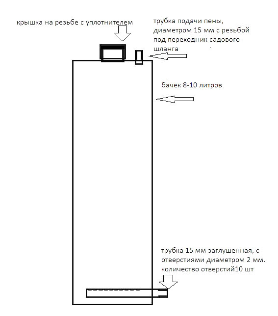 Дело за малым – собрать на основе всего перечисленного полноценный пенообразователь. Несмотря на простоту представленной конструкции, для эффективной реализации данного проекта важно следовать определенной последовательности действий.