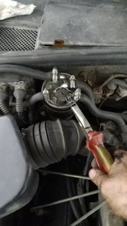 Попускаем два хомута на топливных трубках подачи и обратки топлива. После того как попустите хомуты, снимаем топливные трубки.