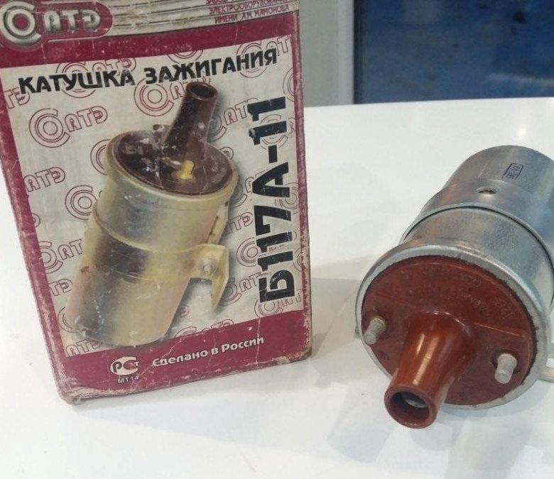 На примере катушки Б-117А. Подробнее см. «Схема катушки зажигания Б-117А».