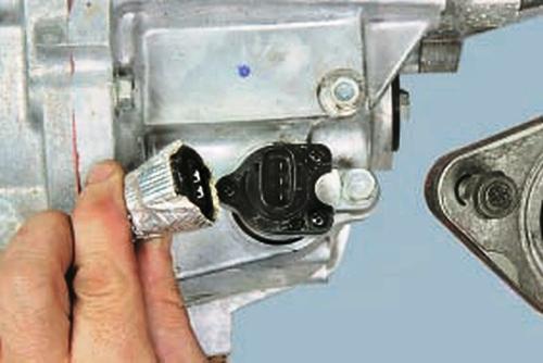 - Поднять машину и найти с левой стороны от коробки передач нужный датчик.