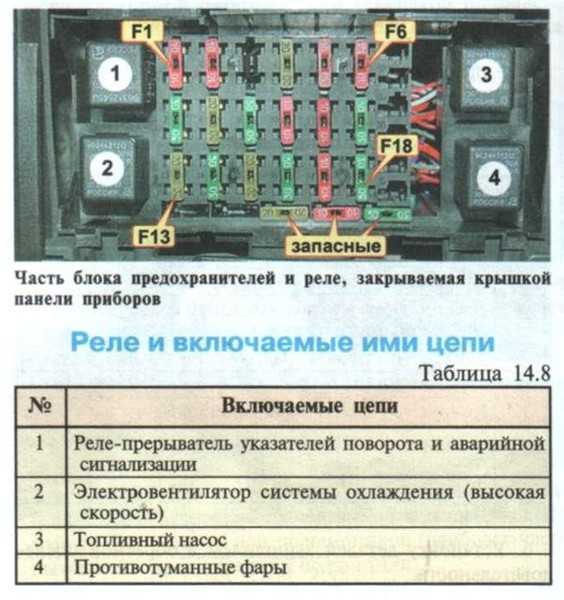 | F18 | AUTO TRUNK DOORLOCK AUDIO (ВАТТ) | 30 | Автомагнитола (питание от аккумуляторной батареи), электрообогрев заднего стекла, электропривод замка крышки багажного отделения, центральный замок |