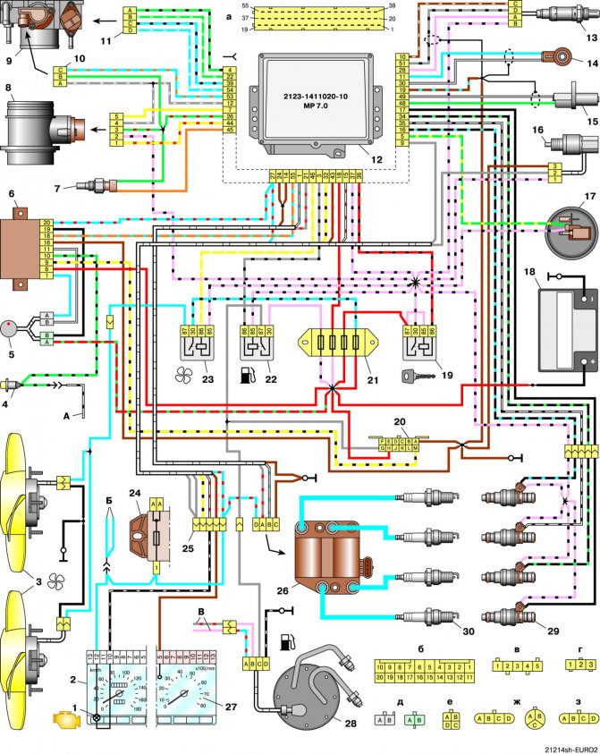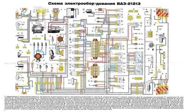 Электрическая схема ВАЗ 21214 (21213, 2121 и 2131) Нива инжектор и карбюратор с описанием проводки
