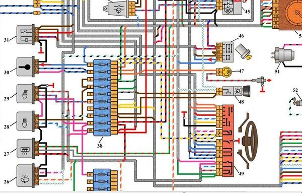 В любом случае, отличия в схеме проводки моделей будут заключаться в первую очередь в зависимости от силового агрегата — карбюраторного или инжекторного.