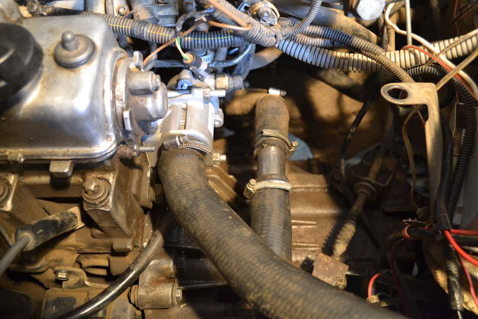 При заливке антифриза желательно снять шланг подогрева дроссельного узла, чтобы вытеснить воздух. В противном случае может образоваться воздушная пробка, с которой придется бороться отдельно. После заливки антифриза и проверки герметичности системы охлаждения прогреваем двигатель и убеждаемся, что термостат работает как положено.