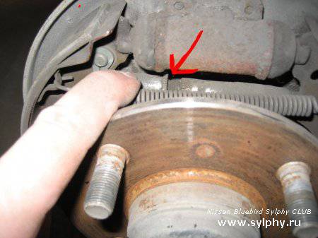 - Вставьте под автомобиль и найдите суппорт заднего тормоза.