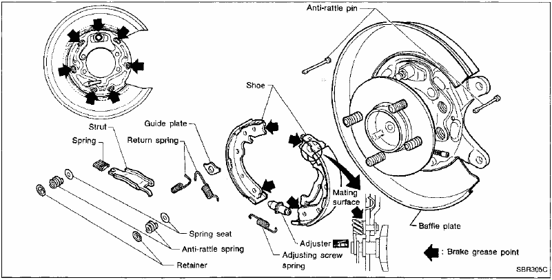 Если такие настройки никак не повлияли на функционирование ручного тормоза Ниссан Кашкай, то, вероятнее всего, барабан имеет выработку, а колодки изношены. В данной ситуации регулировка производится на Ниссан Кашкай после замены всех указанных элементов.