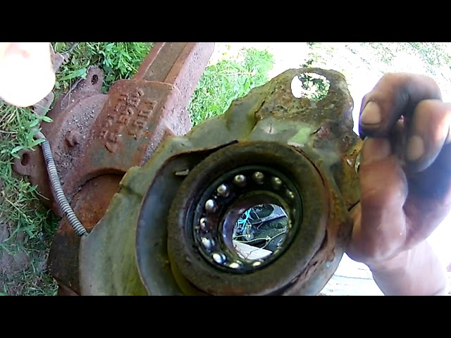Если вы на самом деле выполняли прессовые работы, а это был болт на опорной плите, то в этот момент вам нужно убедиться, что вы установили эту опорную пластину, прежде чем запрессовывать ступицу. Подшипник все еще вращается, без заеданий. Это хорошо. Сейчас я его вытащу и проверю, что он запрессован до конца.