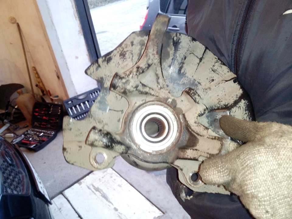 - Место дислокации нового шарикоподшипника в поворотном кулаке очищают от грязи, смазывают.