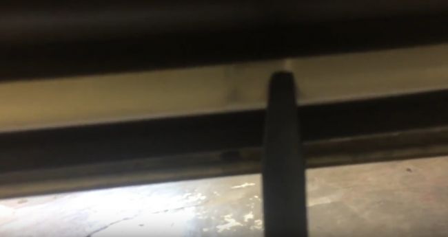 Далее продвигаем рычаг назад до очередного пистона как можно ближе и повторяем отрыв обшивки. Проходим последовательно назад вверх и вперёд вверх. До того момента пока обшивка не останется висеть на верхней полочке.