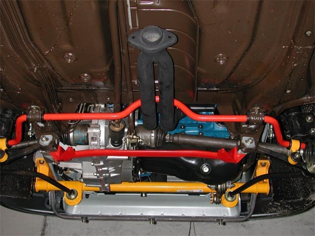 И напоследок — можно уменьшить перемещение задних стаканов и места, где крепится сама задняя балка к кузову, можно в этом случае использовать заднюю распорку. После её установки жесткость кузова увеличивается на 5%, а само перемещение стаканов сократится на 20%.