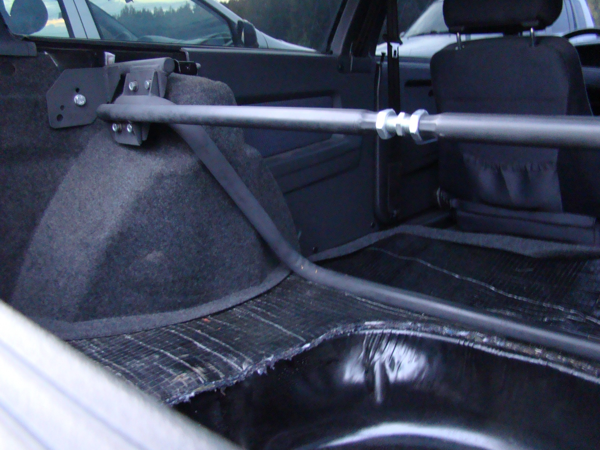 Существует ещё более жёсткая конструкция, ставиться за спинкой заднего сидения-это задний усилитель кузова.