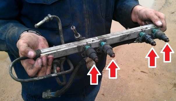 Следует помнить, что при демонтаже форсунок остальная часть бензомагистрали остается не тронутой, и если она загрязнена, то в скором времени форсунки снова засорятся. Во избежание этого рекомендуется одновременно проводить промывку бензопроводов, бензобака и топливной рейки.
