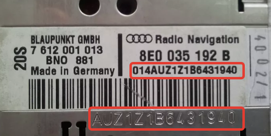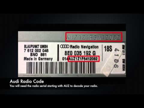 Затем вам понадобится серийный номер audi, чтобы получить код вашей автомобильной магнитолы.