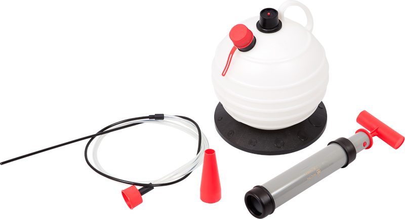 AE&T TA-G1099. AE&T TA-G1099. Вакуумный насос для замены масла в двигателе ручной Цена ~ 3850 ₽ Самое дорогое устройство в нашей выборке по габаритам приближается к профессиональному оборудованию. Бак может принять 9 л масла. Вакуумирование осуществляется вручную насосом. Высокое разрежение позволяет после накачки освободить руки и направить шланг в поддон — для слива масла. Но переходные втулки между шлангом и пробкой емкости оказались от другого набора. Пришлось самодельничать… Вердикт: отлично работает! | Мастак. Вакуумное устройство для слива масла Мастак. Вакуумное устройство для слива масла Цена ~ 3450 ₽ Сферическая камера рассчитана на 6 литров. Сверху — вакуумный насос. Откачка — через металлический рукав с пластиковой оплеткой (оболочка троса Боудена). Поэтому сечение мало. Вердикт: вполне рабочий насос |