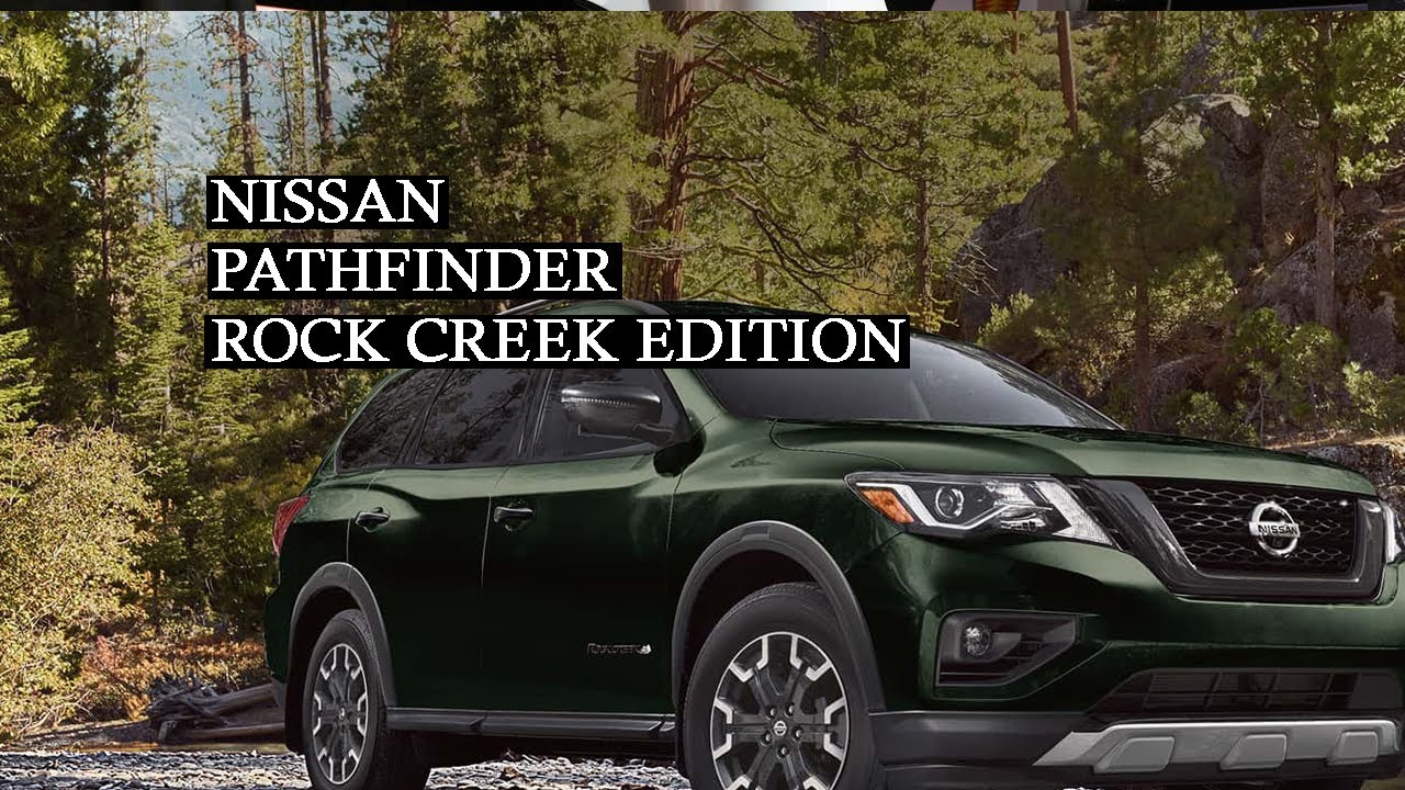 В 2019 году Ниссан представил Pathfinder Rock Creek Edition, который, по сути, представляет собой пакет стайлинг для уровня отделки салона SV или SL. Снаружи Rock Creek Edition оснащен 18-дюймовыми колесами, окрашенными в темный цвет, с всесезонными шинами и затемненными решетками радиатора, значками, рейлингами, крышками боковых зеркал, дверными ручками и крыльями. Внутри вы найдете двухцветную цветовую схему с вышивкой Rock Creek и оранжевой контрастной строчкой.