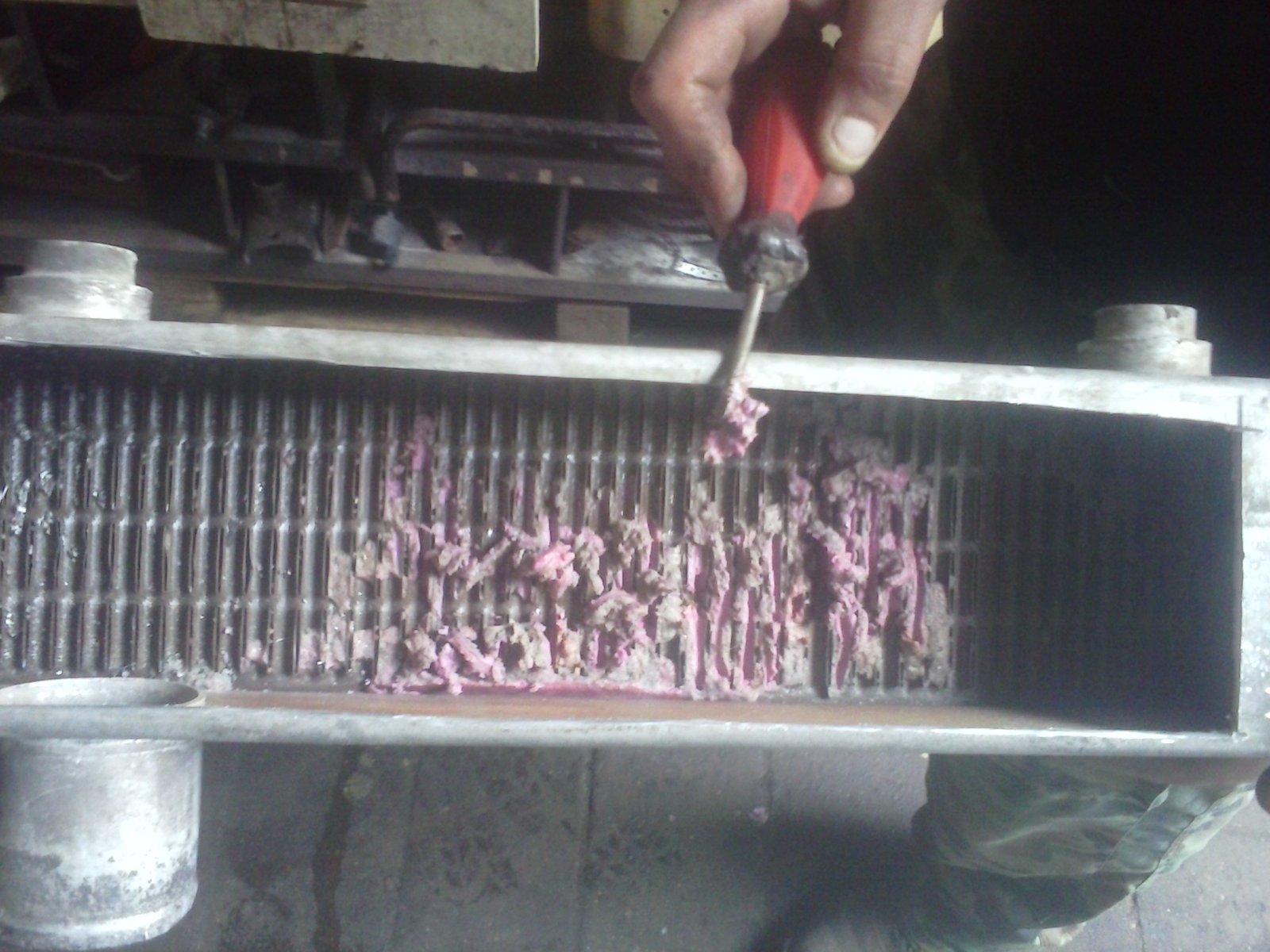 Чтобы избежать этого, узнайте что необходимо заливать в систему охлаждения двигателя. - Иногда радиатор забивается смесью масла и антифриза. Это происходит, если моторное масло по каким-то причинам попадает в систему охлаждения. Утечка масла может быть не видна, а охлаждающая жидкость со временем превращается в «кисель», который и забивает внутренние полости теплообменника.