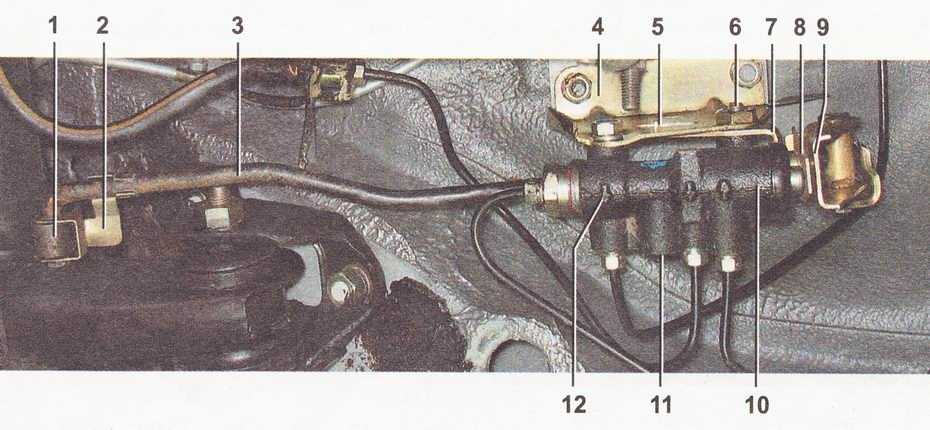 Для регулировки свободного хода педали тормоза необходимо перемещать выключатель стоп-сигналов задних тормозов, который служит упором для педали тормоза.