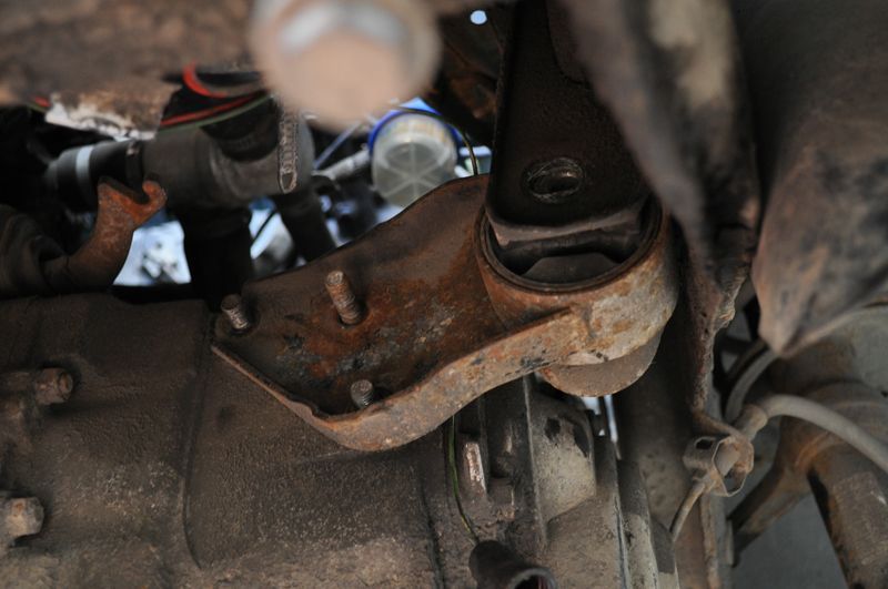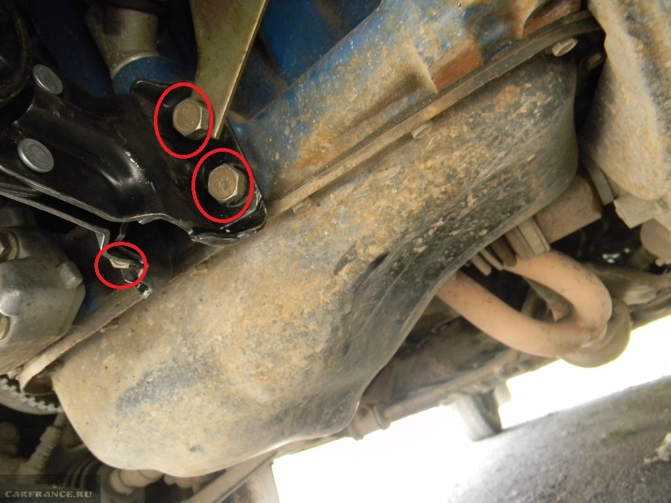 - Далее ослабляется крепление сквозного соединения и убирается болт, за счет которого подушка прикрепляется к раме.