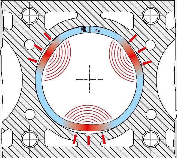 Это означает, что зазор между кольцом и поршнем на чертеже не всегда присутствует при эксплуатации из-за соударения поршня с кольцом. Следовательно, вполне вероятно, что полировка внутренней периферийной поверхности также имеет значение.