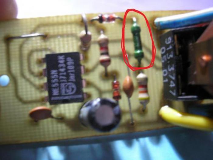 Первый способ, как изменяется пауза. Если необходимо увеличить паузу с четырех секунд до 5-6, тогда необходимо подобрать резистор номиналом большим 62 кОм. Если же, наоборот, то используются номиналы в 45 или 30 кОм. Поэтому необходимо выпаять родной резистор и припаять на то место элемент с новой величиной. Можно вместо нового резистора использовать старый, отпаяв одну ножку и припаяв к ней метр медной проволоки, которая создаст сопротивление в 30 кОм совместно со старым резистором. Но этот способ более долгий и нерациональный, так как необходимо будет заизолировать проволоку и вместить ее в короб.