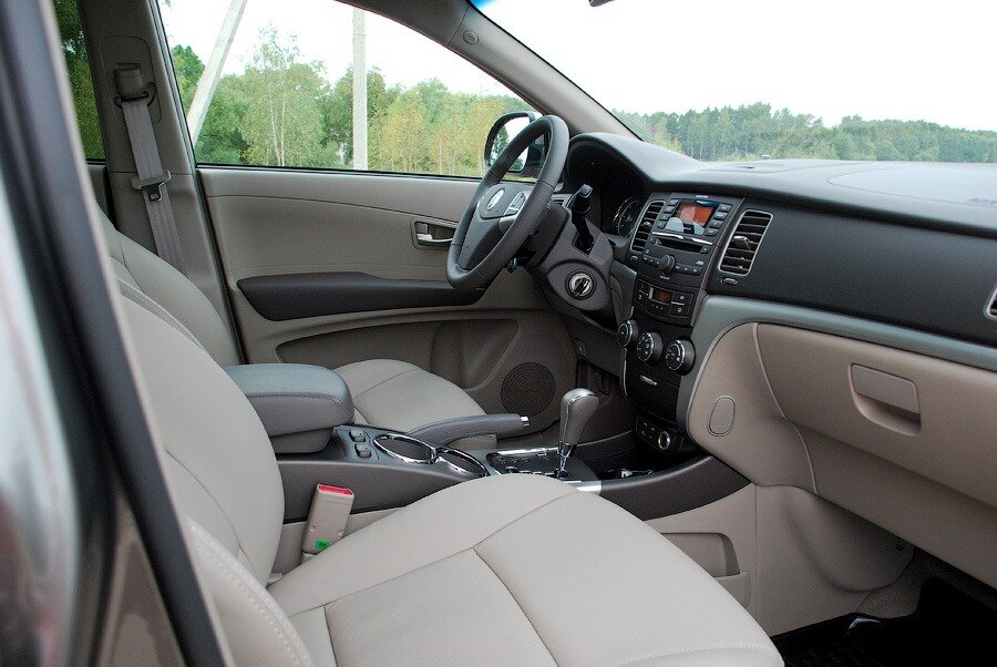 После столь экстравагандного стайлинга, традиционное внутренне убранство SsangYong Actyon уже смотрится архаично. Здесь почти такой же интерьер, как и в Kyron: те же решения, те же цвета, но если для «классического» Kyron это простительно, то Action заслуживал на более яркий интерьер. Хотя яркие «фишки» здесь все же есть. Например, кнопки запирания дверей не только стильные, но и, пожалуй, самые удобные из тех которые можно встретить на современных авто. Неплохо «прописана» верхняя часть торпедо, развернутая к водителю, как в старых BMW. Чувствуется, что дизайн прорабатывали в лучших традициях. Однако впечатление портит жесткая пластмасса отделки и несколько эргономических «просчетов». Нет также тактильного ощущения качества. Казалось, такую приятную опцию, как управление магнитолой на руле, невозможно испортить, но в Actyon на клавиши приходится давать с усилием, да еще и отыскивать в каком месте нужно приложиться.