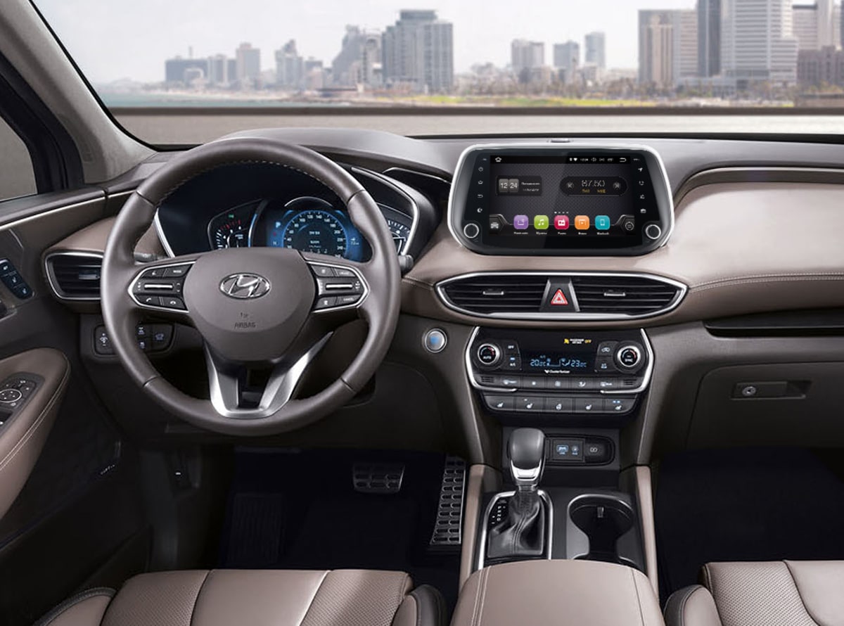 Интерьер салона черпает вдохновение из передней части, так как, к лучшему или худшему, она представляет собой более широкий отход от предыдущего поколения. Santa Fe получил информационно-развлекательный экран в стиле планшета, который сегодня проникает в индустрию. Дизайн, окруженный кнопками быстрого доступа к различным функциям системы и круглыми ручками для регулировки громкости и настройки радио, является функциональным, даже если он не особенно привлекателен.