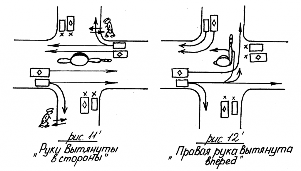 Схема жестов регулировщика ПДД