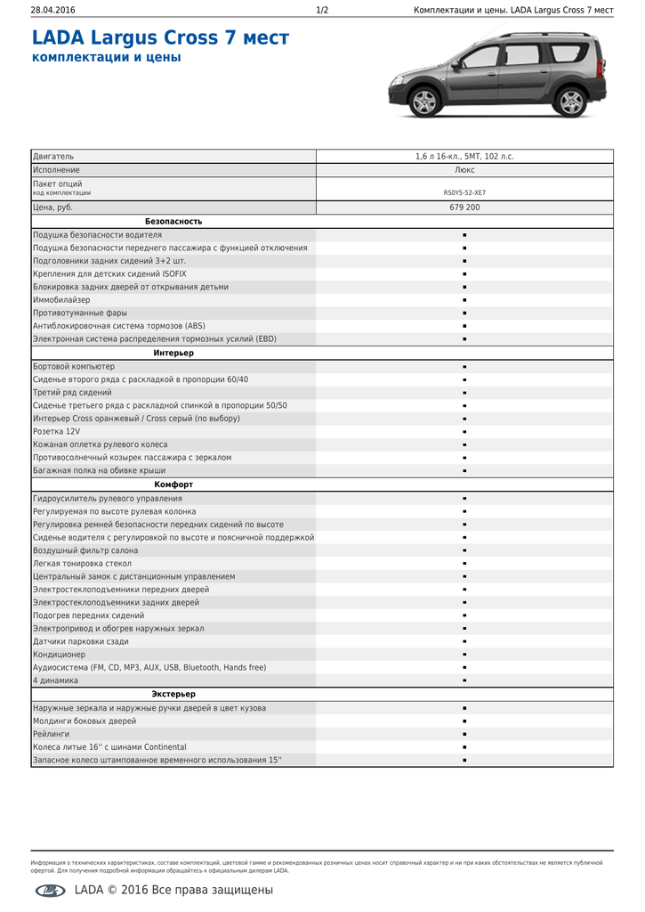 Данные для этой модели расхода Ларгуса будут немного другими: