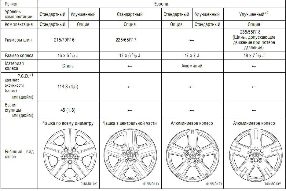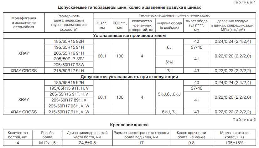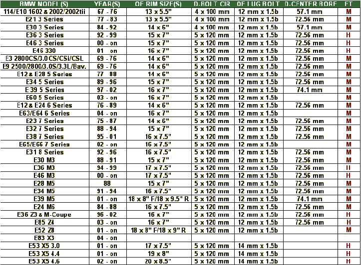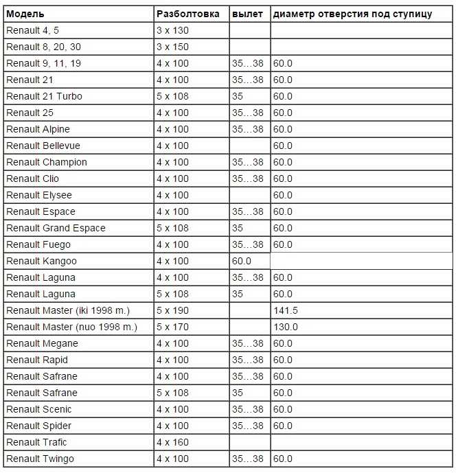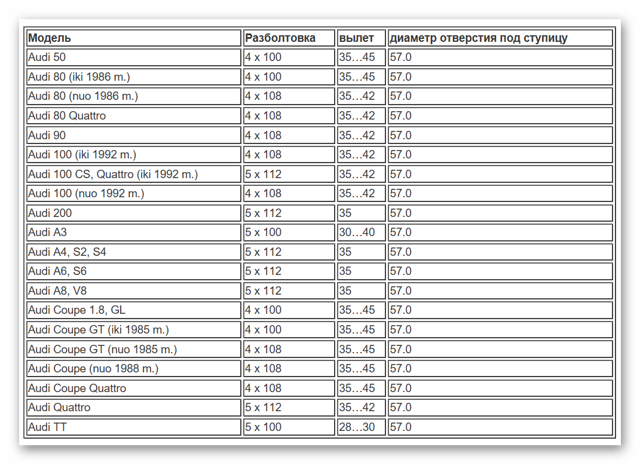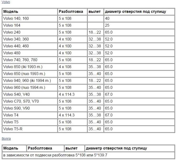 * Эти таблицы служат для информирования, но не являются руководством к действию. По вопросам конкретной применимости нештатных дисков обращайтесь к производителю транспортного средства или к дилеру техники. Мы не ведем испытания по взаимозаменяемости колес и не можем давать рекомендации.