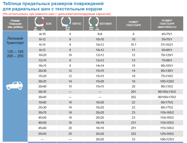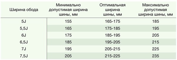 Таблица зависимости ширины шины легкового автомобиля от посадочной ширины колесного диска