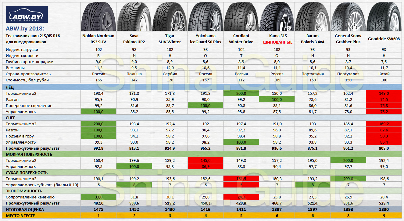 Ширина дисков и шин, конечно, различается, поэтому этот результат не является точным.