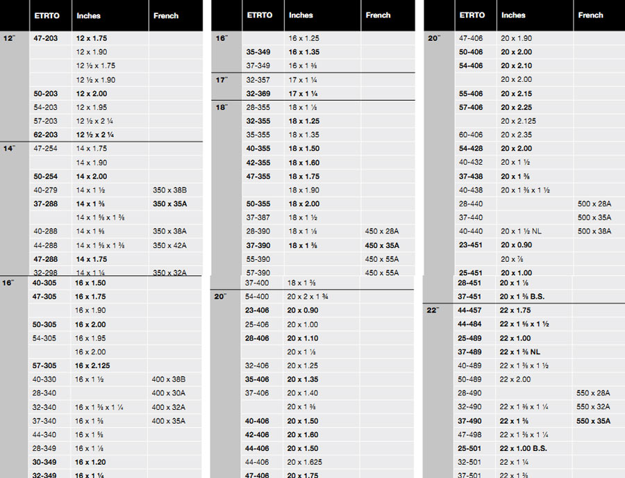 Трубки существовали нескольких разных размеров, но в наши дни легко доступны только трубы 700c и 26 дюймов. Осторожно: размеры 26-дюймовых и 24-дюймовых труб не стандартизированы. Возьмите с собой обод при покупке шины и наоборот. Варианты размеров труб описаны в Справочник Сазерленда по велосипедной механике , 7-е издание, можно приобрести у Сазерленда и на книжной полке механика в лучших велосипедных магазинах.
