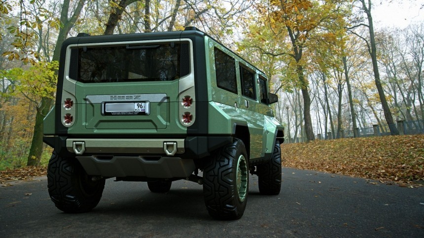 Обратите внимание на декоративные наружные дверные петли. Конечно, это муляж, но вкупе с простым передним бампером в стиле УАЗа смотрится неплохо!