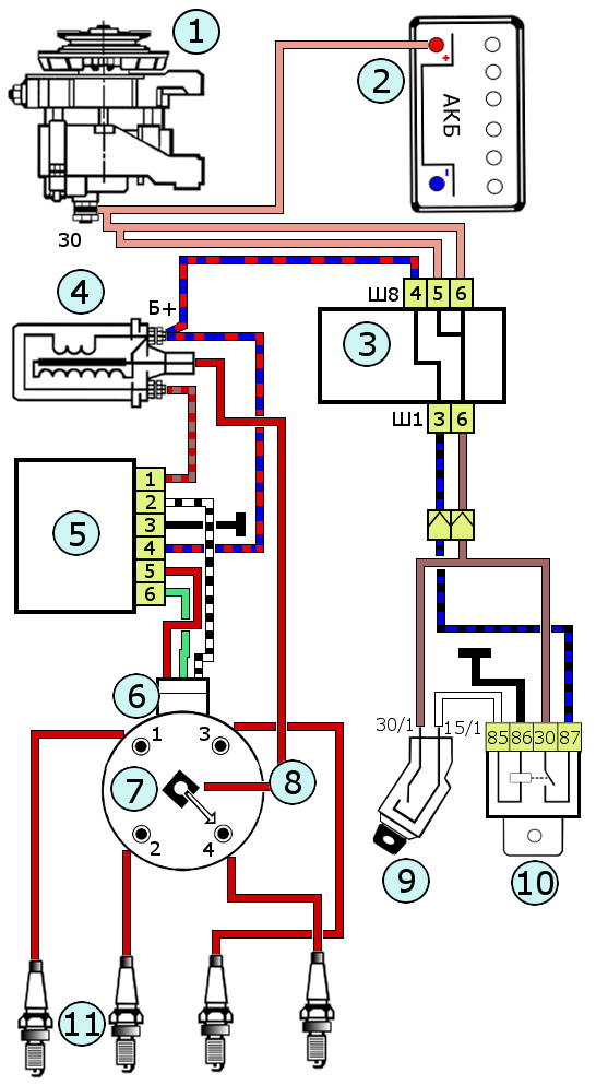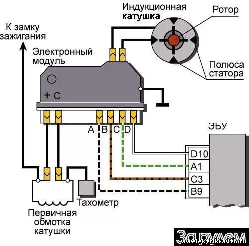 - Внимательно осматриваем состояние проводов между распределителем и коммутатором, также проверяем провода от катушки зажигания к коммутатору.