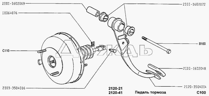 Ваш усилитель тормозов работает от вакуумного давления. Внутри есть диафрагма, которая отвечает за поддержание давления, когда вы не нажимаете на педаль. Однако, когда вы нажимаете на педаль, толкатель движется вперед внутри усилителя и в главный цилиндр. Сторона диафрагмы, обращенная к кабине, вентилируется до атмосферного давления, а с другой стороны поддерживается вакуум.