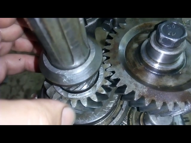 33) Затем проверьте включены ли у вас сразу две передачи, если нет тогда включите их. Когда обе передачи будут включены, отверните болт который крепит блок шестерён 5-той передачи.