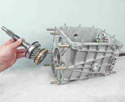 Удерживая на валу шестерни вытаскиваем вторичный вал в сборе из корпуса КПП.