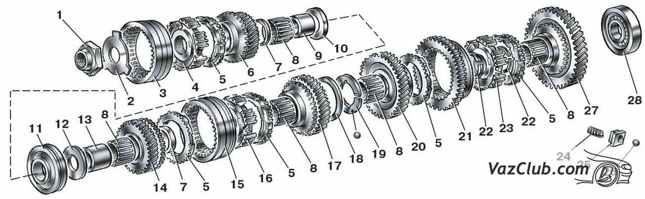 - Передача не фиксируется, «вылетает». Причина такого поведения коробки кроется, как правило, в износе замков шестереночного блока.