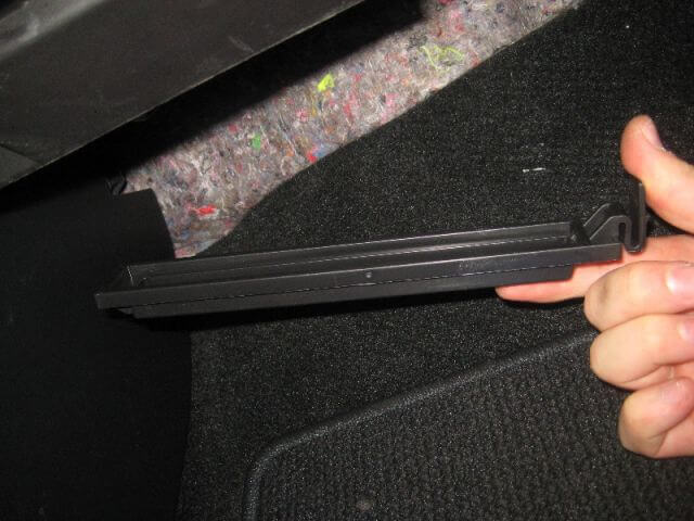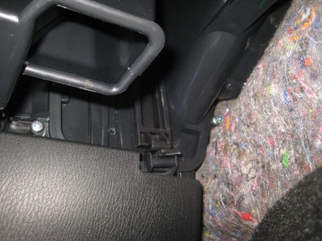 Дальше если посмотреть в глубину за бардачком вы увидите металлический болт на 8 мм, открутите его. Это крышка которая держит фильтр. Теперь можете вытаскивать фильтр.