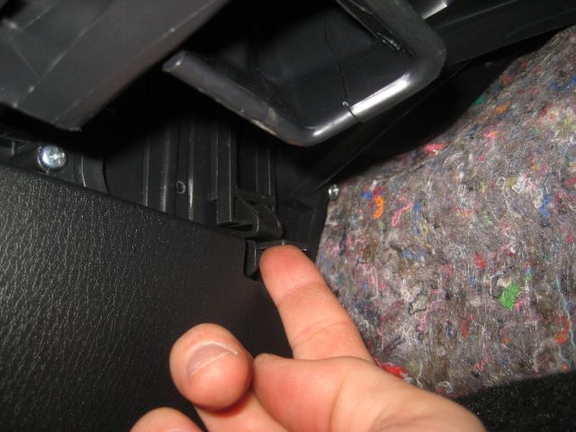 Салонный фильтр на Nissan Pathfinder находится за бардачком. Для начала открываем бардачок, надавливаем на стенки бардачка вовнутрь и опускаем его вниз