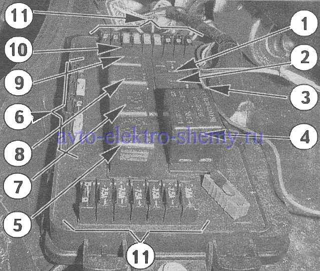 Отличие схемы блока предохранителей двигателя инжектор в том, что вместо 16 защитных элементов, на ней их располагается 20. От 1 до 16, отвечают за те же приборы, что и на карбюраторном двигателе, а вот с 16 до 20 – за все электрические приводы, системы подачи топлива.