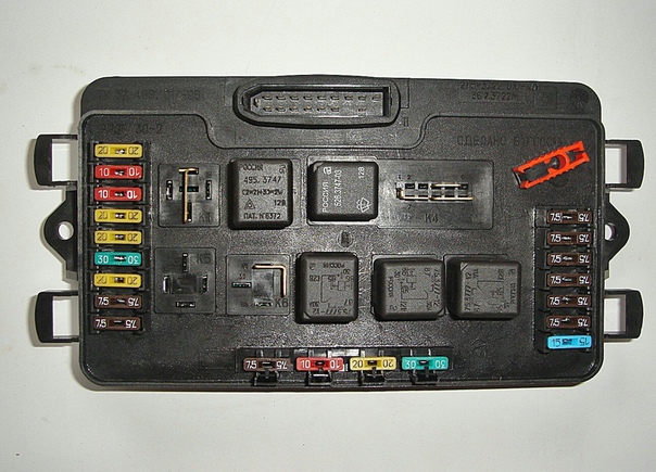 Дизайн коробки монтажного блока со временем стал современнее. Для упрощения жизни водителей на крышке поместили схему и прикрепили пинцет для замены элементов.