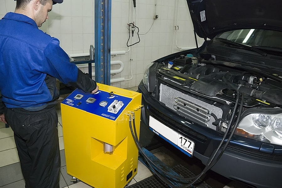 Как уже упоминалось ранее для такого обновления нужно иметь оборудование, которое в основном можно найти на специализированных СТО. Ведь только таким оборудованием можно создать искусственное давление способное вытеснить с коробки старое масло.