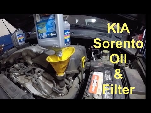 храповиком, пока они не будут плотно прижаты.![]() Если вы поднял автомобиль, осторожно опустите его с домкрата с помощью напольный домкрат. Вставьте автомобильную воронку в масляную заливное отверстие. Внимание — Пожалуйста, ознакомьтесь с разделом «Рекомендуемые смазочные материалы и Емкости» в руководстве пользователя, где указан объем масла. спецификация для вашего автомобиля по замене масла с заменой фильтра. Для Киа Соренто 2019 года с 3,3 л V6, в руководстве по эксплуатации указан объем масла для слива и залейте новый масляный фильтр как 6,87 кварт США (или 6,5 литров). Руководство по эксплуатации для ранее 2017 года Sorento перечисляет 6,02 кварты США как емкость для слить и залить с заменой фильтра. Пожалуйста, дважды проверьте руководство перед заливкой масла в двигатель! | ||