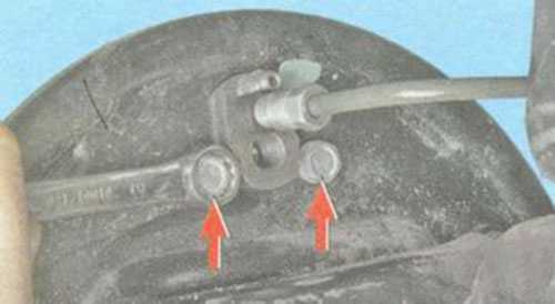 После того как вы «сорвете» гайку, ее можно открутить обычным рожковым ключом. Делаем это аккуратно, наблюдаем, чтобы тормозная трубка не проворачивалась вместе с гайкой, она может переломиться.