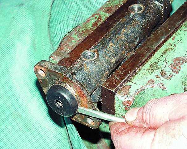- Очищаем посадочное место для нового тормозного цилиндра.