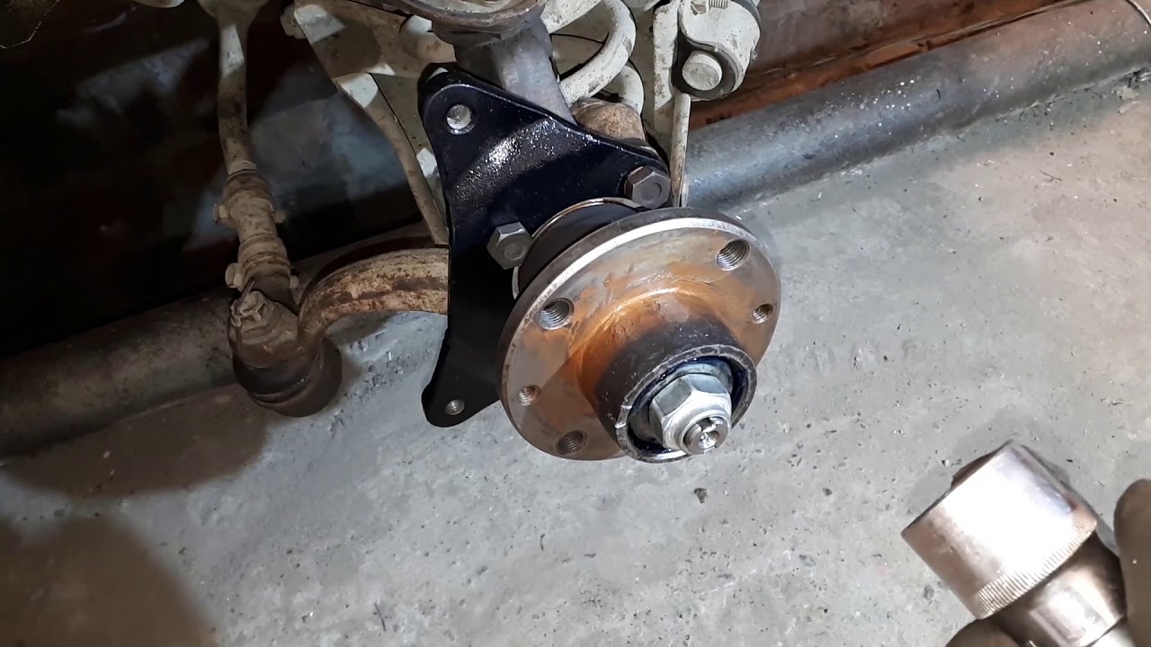 - Увеличение люфта из-за поломки подшипника ступицы и сильного износа оси кулака.