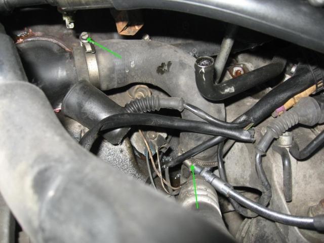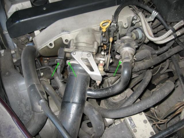 нижний болт — легко и просто.верхний — лучше применить змеевик,ибо мешает ролик ГУРа,но мы умудрились открутить и так!тонким ключом с головкой